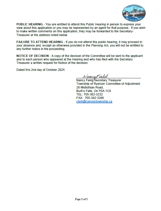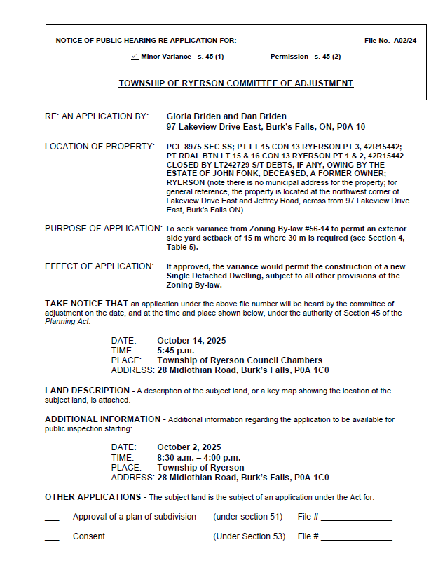 NOTICE OF PUBLIC MEETING - October 14, 2025 Minor Variance (Briden)
