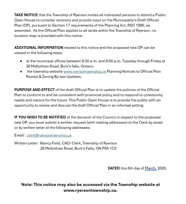 PUBLIC OPEN HOUSE NOTICE - March 23, 2026