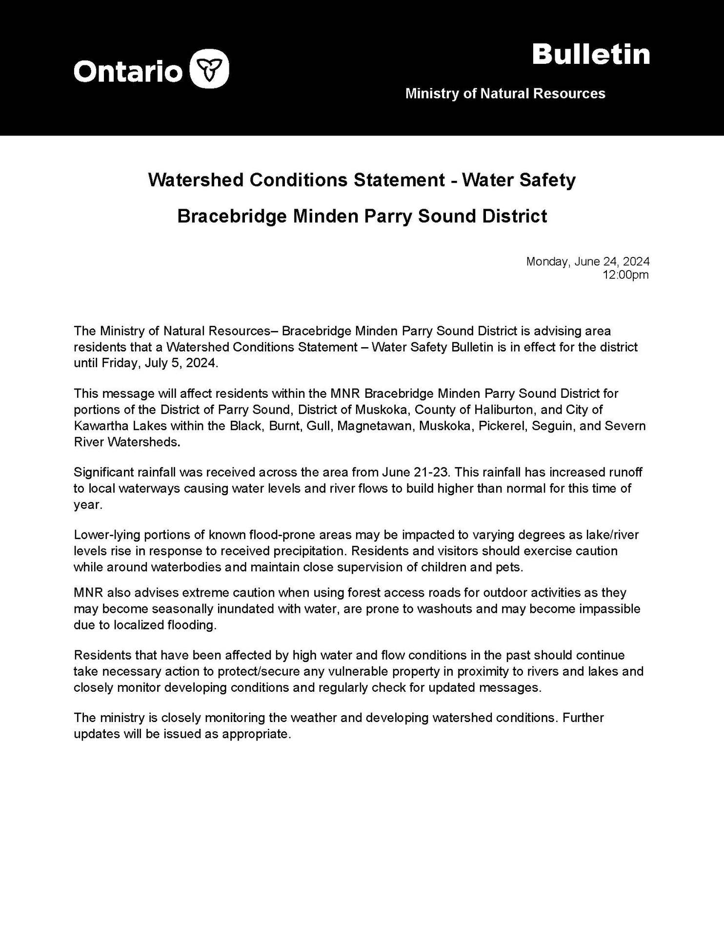 Watershed Conditions Statement Bulletin - Bracebridge Minden Parry Sound District